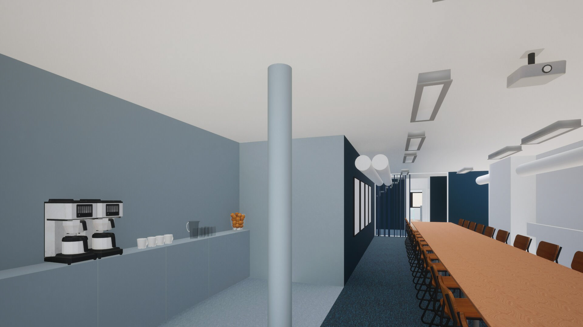 Tilakonseptin suunnittelu, joka tuo yhtenäisen ilmeen ja kokonaisuuden Extronin toimitiloihin. Konsepti huomioi yrityksen brändi-ilmettä.